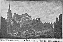 De même, en 1914, 1940 et 1944, les bombardements ont entraîné des destructions. Le bombardement qui eut lieu la veille de la signature de l'armistice, le , détruisit les vitraux. Les Allemands enlevèrent les cloches et brisèrent les orgues. En , les bombardements de l'US Air Force font des victimes devant l’église et détruisent des maisons dans les environs[4].