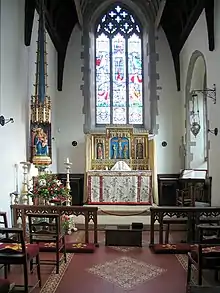 Le retable présent dans l'église a été réalisé par James et Lilian Dagless. Le vitrail représentant l'Assomption (juste au-dessus du retable) est l’œuvre de Geoffrey Webb. Le vitrail de la fenêtre ouest, représentant l'Annonciation est l'œuvre d'Alfred Fisher. Ce vitrail a été installé en 1997 pour fêter le centenaire du premier pèlerinage post-Réforme à Walsingham[7].