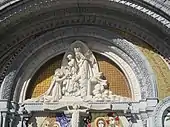 Le tympan du portail d'entrée de la basilique est orné d'un haut-relief en pierre blanche, œuvre d'Henri-Charles Maniglier, figurant La Vierge remettant le rosaire à saint Dominique à saint Dominique (1890). Cette œuvre a été offerte par l'architecte.