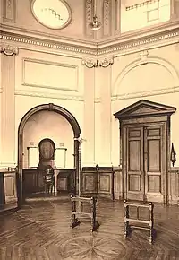 Indépendante de la basilique, la sacristie de style Louis XVI est construite en 1775 par Laurent-Benoît Dewez. Elle présente un plan octogonal à l'intérieur[37], même si le volume total du bâtiment au sol est carré[38]. Chaque paroi est percée au-dessus d'une baie alternativement ronde ou quadrangulaire et une fenêtre en plein cintre supplémentaire fait face à la porte d'entrée. Cette dernière, fabriquée en chêne, est surmontée d'un fronton triangulaire et mène à l'ambulacre qui la relie à la basilique. Aux angles, des pilastres à chapiteau ionique supportent une corniche moulurée[39].
