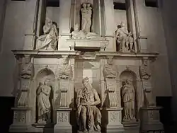 Le Moïse, œuvre de Michel-Ange achevée en 1515, était prévu à l'origine pour être un élément d'une gigantesque composition de 47 statues qui aurait composé le mausolée du pape Jules II à la basilique Saint-Pierre de Rome ; après les remaniements multiples de ce projet pendant quarante ans, il devint finalement la pièce maîtresse du cénotaphe du souverain pontife et de sa famille, les Della Rovere.