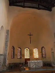 Toutefois, l'abside a été probablement réalisée au VIe siècle par l'évêque Agnello (556-569), avec la contribution du banquier mécène de Ravenne, Giuliano Argentario.