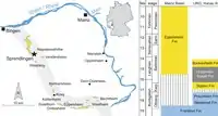 à droite : tableau stratigraphique avec les formations du miocène moyen et supérieur du bassin de Mayence et des bassins tertiaires voisins.
