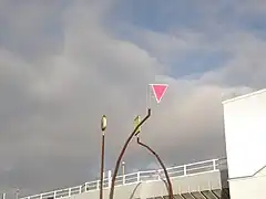 L'œuvre d'art associée à la station est une installation, sans titre, due à l'artiste Beate Honsell-Weiss[alpha 1]. Elle est composée de trois mâts en acier à l'extérieur de la station, portant chacun « une forme géométrique simple en plexiglas coloré (rectangle vert, triangle rouge, ovale doré), formant des signaux lumineux »[6],[7].