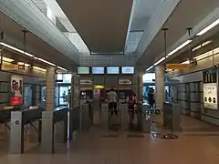 L'entrée du bâtiment se compose d'un grand hall, avec à l'intérieur des guichets automatiques pour l'achat les titres de transports, des informations en temps réel sur l'état du réseau Tisséo et sur les arrivées et départs des prochains bus du réseau. Il y a également des tourniquets, qui permettent l'accès à un escalator pour monter vers les quais, qui sont situés au-dessus du hall d'accueil.