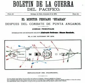 La bataille d'Angamos est un combat naval qui eut lieu entre la Marine péruvienne et la Marine chilienne au large de Punta Angamos, le . Lors de celui-ci, une escadre chilienne parvient à capturer le monitor péruvien Huáscar. Cette bataille décisive met fin aux raids du monitor et permet au Chili de contrôler le théâtre naval de la guerre du Pacifique qui oppose les deux pays.