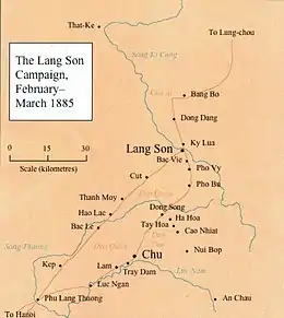 Le général Louis Brière de l'Isle, sort de la ville de Lang Son (dont il vient de s'emparer), pour se porter au secours des forces françaises assiégées dans la ville de Tuyên Quang. Grâce à cette intervention, les forces Chinoises se replient[3], le 23 février 1885 sans que les Français soient en mesure de leur infliger une défaite décisive.