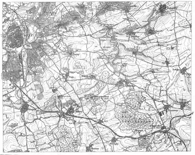 Le terrain est relativement vallonné. Au nord, le plateau de Saint-Julien, couvert de vignes et sans bois notable. Au sud, le plateau de Borny, couvert de bois et de bosquets, relevé vers l’est. Deux thalwegs majeurs, une vallée nord/sud, celle du ruisseau de Vallières qui coupe le plateau de Borny en deux. Une vallée est-ouest assez encaissée entre le plateau de Borny et celui de Saint-Julien, celle du ruisseau de Quarante appelée aussi ravin de Nouilly. Les deux vallées se rejoignent à un kilomètre à l’ouest de Nouilly. Il est dominé par trois forts, deux ouvrages majeurs, le fort de Queuleu au sud et le fort de Saint-Julien au nord et un ouvrage plus petit, le fort des Bordes au centre.