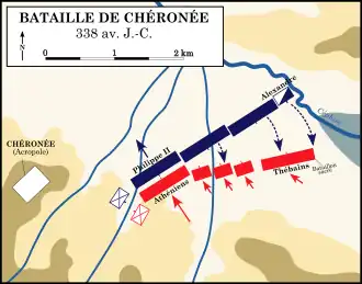 La bataille de Chéronée est une bataille ayant opposé en Béotie, le , Philippe II à une coalition de cités grecques menée par Athènes et Thèbes. Remportée par l'armée macédonienne, cette bataille consacre la domination macédonienne sur la péninsule grecque.