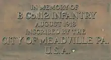 À la fin de la bataille entre les deux pays engagés, la compagnie B du 112e régiment d’infanterie de Meadville, qui comptait 151 membres affectés au service de la France, a perdu dix soldats et compte 48 blessés. Les survivants formaient un groupe qui sera à jamais lié. Ce groupe s'appelait "Last Man Society" (société du dernier homme en français), formée par le lieutenant colonel R. Bruce Campbell et Fredrick L. Pond. Le nom de ce groupe a par la suite été changé en "Société de Fismes" en 1948 pour indiquer le lien du groupe avec la ville en France. Ce groupe devait se réunir régulièrement en souvenir de leurs efforts et le dernier homme du club devait boire une bouteille de vin qui était Barton & Guestier "Royal Purple Burgundy" rapporté de France par le lieutenant Pond. Ignatius Joseph Maggio était le dernier membre de la Société. Il est décédé le 12 mai 1995 à l'âge de 100 ans. Il décida de ne pas ouvrir la bouteille, préférant la laisser fermée. Elle réside maintenant dans l'édifice de la ville de Meadville, scellé et intact[6].