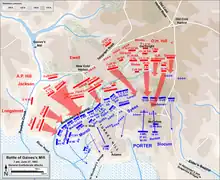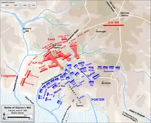 La bataille de Gaines's Mill, parfois connue comme la première bataille de Cold Harbor ou la bataille de la Chickahominy River, s'est déroulée le , dans le comté de Hanover, en Virginie, troisième bataille de la bataille des sept jours (campagne de la Péninsule) de la guerre de Sécession. À la suite de l'échec de la bataille de Beaver Dam Creek (Mechanicsville) de la veille, le général confédéré Robert E. Lee renouvelle ses attaques contre le flanc droit de l'armée de l'Union, relativement isolé sur le côté nord de la rivière Chickahominy. Là, le V corps du brigadier général Fitz John Porter a établi une solide ligne de défense derrière Boatswain's Swamp. La force de Lee doit lancer la plus grande attaque confédérée de la guerre, près de 57000 hommes en six divisions. Le V corps renforcé de Porter tient fermement l'après-midi alors que les confédérés attaquent de façon décousue, d'abord avec la division du major général A. P. Hill, puis avec celle du major général Richard S. Ewell, subissant de lourdes pertes. L'arrivée du commandement du major général Stonewall Jackson est retardée, empêchant la concentration totale de la force confédérée avant la réception des renforts du VI corps par Porter.