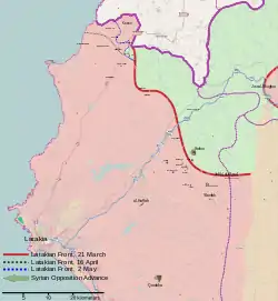 Le 25 mars, les rebelles prennent le village de Samra, donnant ainsi pour la première fois à la rébellion syrienne une ouverture sur la mer[2].
