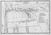 Le , le général John Keane et le lieutenant colonel Thortorn (en) avec une avant-garde britannique de 1 800 soldats aidés par des pêcheurs espagnols embarquent de Pea Island en direction de la rive est du Mississippi sous la bruine qui persistera toute la journée[31]. Le même jour, l'escadron de dragons légers du colonel Thomas Hinds (en), une unité de milice du territoire du Mississippi (les dragons de Hind deviendront le 155e régiment d'infanterie de la garde du Mississippi de l'armée nationale) arrive à La Nouvelle-Orléans[32]. Jackson avait fait positionner un petit groupe d'éclaireurs à l'embouchure du bayou « Bienvenu » dans un village de pêcheurs, mais tous sont capturés par les Britanniques à l'exception d'un qui mettra trois jours à traverser les marais en bravant une multitude de dangers. Keane essaye en vain d'obtenir des informations sur les défenses de la ville. Les prisonniers avancent un chiffre de 12 000 à 15 000 hommes qui défendraient La Nouvelle-Orléans, ce que ne confirment pas les informateurs de Keane[33].