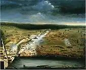 Le , l'attaque commença dans les ténèbres et un épais brouillard. Le Lt.-Col. Thomas Mullins (en), commandant du 44e régiment (East Essex) à pied britannique, avait oublié les échelles et les fascines nécessaires pour traverser le canal asséché par les travaux de terrassement américains et escalader les fortifications de la ligne Jackson, les Britanniques tentèrent de profiter de la confusion liée à l'obscurité et au brouillard, mais lorsqu'ils approchèrent de la principale ligne ennemie le brouillard se leva, les exposant à des tirs d'artillerie foudroyants. La plupart des officiers supérieurs furent tués ou blessés, y compris le général Gibbs, pendant qu'il menait l'attaque à la tête de la colonne principale sur la droite comprenant les 4e, 21e, 44e et 5e régiments des Indes occidentales. Le colonel Rennie à la tête d'un détachement de compagnies légères de la 7e, 43e, et 93e mènent un assaut simultané sur la gauche de la rivière.