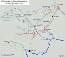 La bataille de Maloïaroslavets eut lieu le lors de la guerre de la Sixième Coalition, pendant la campagne de Russie, entre l'avant-garde de la Grande Armée, commandée par Eugène de Beauharnais, et les forces d'Alexandre Ier. Les troupes franco-italiennes ne peuvent percer vers le sud, ce qui oblige Napoléon à évacuer la Russie par la route déjà suivie à l'aller, par une région dévastée et manquant de provisions, transformant la retraite de Russie en désastre.