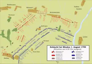 La bataille de Minden, épisode décisif de la guerre de Sept Ans, s'est déroulée le aux portes de la place de Minden en Rhénanie-Westphalie. Les armées britanniques et leurs alliés, le Brunswick-Lunebourg (ou Hanovre) et le Royaume de Prusse, vainquirent la France et ses alliés, dont le duché de Saxe.