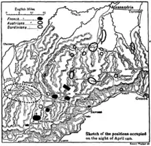 Les troupes de la droite sont laissées en avant de Vico, les autres rangées à grands intervalles à découvert autour de ce village et au long du grand chemin qui mène à Mondovi.