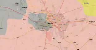 Le 18 juin, l'armée irakienne annonce le début de son offensive sur la vieille ville[392],[393],[394],[395],[396]. Environ 5 000 hommes sont engagés dans cet ultime assaut[397]. La division d'or, menée par les lieutenant-colonels Mohannad el-Tamimi et Salam Jassem Hussein[398], attaque depuis le quartier de Farouq, au nord-ouest ; la 16e division depuis Bab el-Sinjar au nord et Bab al-Lakash au sud ; et la police fédérale depuis Bab el-Baid au sud-ouest[389]. La zone est encore défendue par plusieurs centaines de djihadistes gardés en réserve et constitués de combattants parmi les plus aguerris[399]. Les combats ont alors lieu dans des rues très étroites : l'armée irakienne ne peut plus utiliser de blindés et l'État islamique ne peut plus engager de véhicules kamikazes[399]. Les forces de l'EI utilisent alors des mines, des snipers et des motos kamikazes[400]. Le 20 juin, la 9e division de l'armée irakienne et la Force d'intervention rapide achèvent l'encerclement de la vieille ville en reprenant le quartier d'al-Shifaa et notamment l'hôpital al-Sina[401],[399],[389]. Selon l'ONU, plus de 100 000 civils sont toujours retenus comme boucliers humains[393],[394],[402].