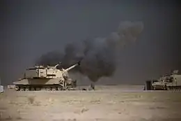 Un M109A6 Paladin de l'armée américaine ouvrant le feu à Qayyarah, le .