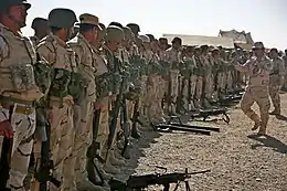 Instructeur italien avec des Peshmergas près d'Erbil, le .