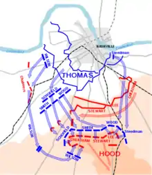 - (en) Cet article est partiellement ou en totalité issu de l’article de Wikipédia en anglais intitulé « Battle of Nashville » (voir la liste des auteurs).