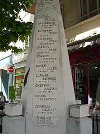 À 18h30, le résistant Fortuné Barralis dit René du groupe Lorraine est mortellement touché au passage à niveau par les tirs allemands en revenant d'une mission en service commandé rue Gutenberg (recherche de munitions et ramassage de blessés)[48].