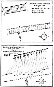 Rodney envoie un signal demandant à chaque vaisseau anglais d'attaquer le vaisseau français qui lui correspondait dans la disposition des deux flottes. En envoyant ce signal, il pense alors que ses capitaines l'exécuteraient conformément aux instructions qu'il avait données plus tôt dans la journée, à savoir que l'arrière-garde française était la cible prioritaire de l'attaque. Conformément à ces instructions, la flotte anglaise se décide, vers 11 heures, à attaquer les Français, placés en ordre de bataille, chaque vaisseau anglais se porte sur le vaisseau français qui lui correspondait.