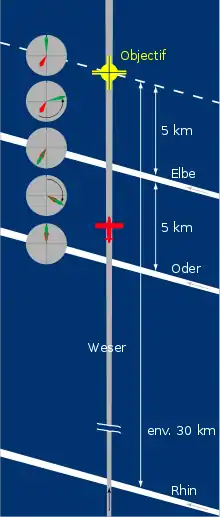 Le X-Gerät est alors mis en échec avec une autre tactique en créant un « faux faisceau Elbe » qui est dirigé pour couper le Weser 1 km après le faisceau Oder, c'est-à-dire beaucoup plus tôt que les 5 km attendus. Étant donné que les dernières étapes précédant le largage sont automatiques, le chronomètre s'inverse trop tôt et les bombes sont larguées plusieurs kilomètres avant l'objectif. La mise en œuvre du faux faisceau est cependant assez compliquée car les Allemands, ayant tiré les conséquences de leurs déboires avec le Knickebein, mettent le dispositif X-Gerät en route au dernier moment augmentant ainsi énormément la difficulté pour préparer le faux faisceau Elbe à temps.