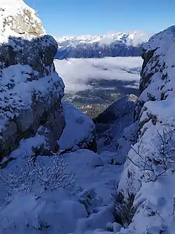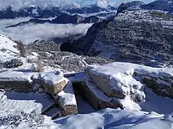 La pierre commémorative autrichienne sur le Mont Ortigara érigée par la Croix Noire autrichienne en 1967. |