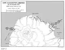 La bataille du cap Gloucester fut livrée entre décembre 1943 et avril 1944 lors de la campagne de Nouvelle-Bretagne sur le théâtre du Pacifique de la Seconde Guerre mondiale. Elle faisait partie de l'opération Cartwheel et visait à la capture de l'aérodrome de Tuluvu établi près de Cape Gloucester, une péninsule situé au nord de l'extrême-ouest de l'île de Nouvelle-Bretagne mais également à accentuer l'isolement de la base de Rabaul, principale base militaire et logistique japonaise dans le Pacifique du sud-ouest, où étaient stationnés près de 60 000 soldats impériaux. Un objectif secondaire de cette opération était d'assurer le libre-passage de la mer par les Alliés des détroits séparant la Nouvelle-Bretagne de la Nouvelle-Guinée Il s'agit du deuxième débarquement de la 1re division des Marines après celui de Guadalcanal.