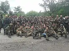 Outre ces bataillons de défense territoriale, plusieurs unités régulières des forces armées ukrainiennes ont été formées de volontaires, comme le 3e bataillon aéromobile « Phoenix » ou le 54e bataillon de reconnaissance « UNSO »[10]. En 2015, le 46e bataillon Spetsnaz[11] « Donbas Ukraine » est créé à partir de volontaires du bataillon Donbass qui ont décidé de passer de la Garde nationale ukrainienne aux forces armées régulieres.