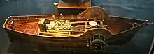 L'utilisation de l'énergie humaine (ou animale) disparait avec l'invention en 1685, par le physicien français Denis Papin, de la roue à aubes actionnée par vapeur sous pression dans des chaudières alimentées au bois ou au charbon[1]. Cette forme de propulsion a été depuis presque entièrement remplacée par la propulsion à hélice et d'autres formes de propulsion plus modernes excepté en certains lieux traditionnels, sur quelques lacs (Léman…) et fleuves (Mississippi…). Par le passé, certains bateaux combinèrent voiles et roues à aubes (voir infra).