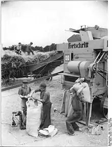 Par la suite, le ramassage du blé et son battage ont été proposés sur une même machine (moissonneuse-batteuse). Les moissonneuses-batteuses sont aujourd'hui des machines polyvalentes qui sont adaptées au battage de la plupart des récoltes moyennant le changement ou la modification de la table de coupe et le réglage du batteur et des systèmes de vannage et triage.