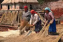 - le foulage, par piétinement humain ou animal ; le foulage par des animaux est aussi appelé dépiquage[2],