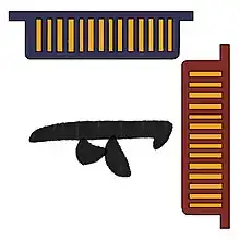 Il représente un battant de porte parfois rouge. Originellement vertical , il est fréquemment horizontal pour des raisons graphiques. Il est translittéré ˁȝ.