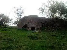Quant au réduit, il s'agit d'un petit bâtiment rectangulaire protégé lui aussi par une levée de terre sur un de ses côtés. L'intérieur est en relativement bon état, tout comme les deux entrées et plusieurs meurtrières [9].