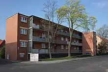 Les maisons avec accès aux balcons (en allemand : Laubenganghäuser) font partie d'une deuxième phase du Bauhaus impulsée par Hannes Meyer, successeur de Walter Gropius, qui met l'accent sur la fonctionnalité et la maîtrise des coûts. Elles sont construites par Meyer au sud-ouest de Dessau en 1930. Il s'agit de cinq maisons de trois étages en briques rouges, comprenant chacune 18 appartements d'une superficie de 47 m2[6].