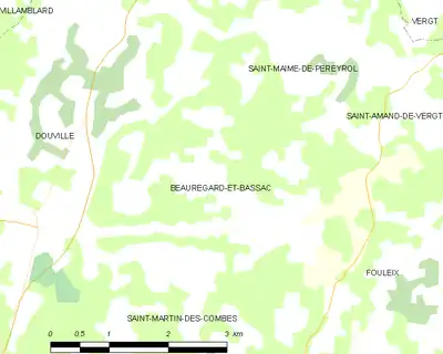 Beauregard-et-Bassac est limitrophe de quatre autres communes. À l'est, son territoire est distant de moins de 600 mètres de celui de Saint-Amand-de-Vergt.