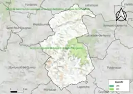 La commune fait ainsi partie du parc naturel régional des Causses du Quercy, un espace protégé créé en 1999 et d'une superficie de 183 039 ha, qui s'étend sur 102 communes du département du Lot[10]. La cohérence du territoire du Parc s’est fondée sur l’unité géologique d’un même socle de massif karstique, entaillé de profondes vallées. Le périmètre repose sur une unité de paysages autour de la pierre et du bâti (souvent en pierre sèche), de l’empreinte des pelouses sèches et du pastoralisme et de l’omniprésence des patrimoines naturels et culturels[11],[12]. Ce parc a été classé Géoparc en mai 2017 sous la dénomination « géoparc des causses du Quercy, faisant dès lors partie du Réseau mondial des Géoparcs, soutenu par l’UNESCO[13],[14] ;