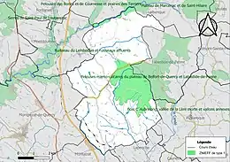 L’inventaire des zones naturelles d'intérêt écologique, faunistique et floristique (ZNIEFF) a pour objectif de réaliser une couverture des zones les plus intéressantes sur le plan écologique, essentiellement dans la perspective d’améliorer la connaissance du patrimoine naturel national et de fournir aux différents décideurs un outil d’aide à la prise en compte de l’environnement dans l’aménagement du territoire. Deux ZNIEFF de type 1[Note 2] sont recensées sur la commune[18] : les « pelouses marno-calcaires du plateau de Belfort-de-Quercy et Labastide-de-Penne » (1 188 ha), couvrant 4 communes dont deux dans le Lot et deux dans le Tarn-et-Garonne[19] et le « ruisseau du Lemboulas et ruisseaux affluents » (1 311 ha), couvrant 9 communes dont six dans le Lot et trois dans le Tarn-et-Garonne[20].
