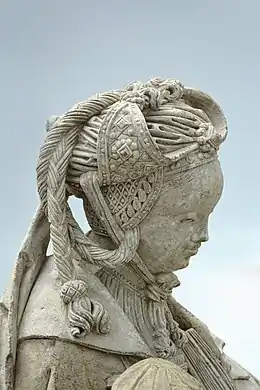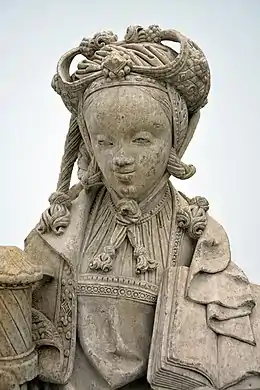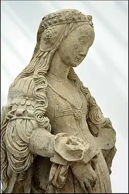 Sainte Marie-Madeleine, probablement sculptée vers 1520 [13]. La statue, de 123 cm de haut, présente beaucoup de détails : par exemple un livre dont une page est abimée et dont le coin est replié, des bijoux, des tresses, etc.
