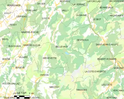 Les communes limitrophes de Bellevaux sont Habère-Lullin, Habère-Poche, Lullin, Vailly, Mégevette, La Baume, Seytroux, Saint-Jean-d'Aulps, La Côte-d'Arbroz et Mieussy.