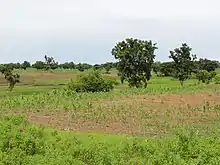 Les champs et les jachères sont constitués de cultures vivrières et de subsistance telles que l’igname (Dioscorea spp), le sorgho (Sorghum bicolor), etc. Les espèces ligneuses rencontrées dans les champs et les jachères sont celles épargnées à cause de leur importance socio-économique. Il s’agit essentiellement du karité (Vitellaria paradoxa) et du néré (Parkia biglobosa). Les recrûs ligneux rencontrés très souvent dans les champs et les jachères sont : Daniellia oliveri, Parinari curatellifolia et Pteleopsis suberosa.