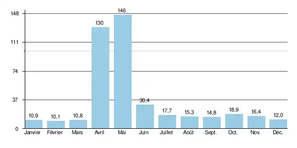 En ce qui concerne la période estivale, la plus importante car libre de glaces (de mai à octobre inclus), le débit minimal observé a été de 6,90 m3/s en . Un débit mensuel estival inférieur à 8 m3/s est assez exceptionnel.