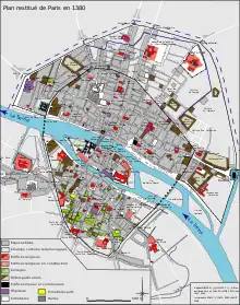 À la fin du XIVe siècle, la Bièvre avait donc trois confluents, le débouché primitif à l'emplacement de l'actuelle gare d'Austerlitz qui n'était pas totalement tari, celui intra muros près de la rue de Bièvre qui n'était plus alimenté et celui près de la porte Saint-Bernard[20].