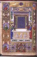 | Volume 4 (L70) | 1497 | 498 folio ; 40,7 × 27,3 cm | Alessandro da Verrazzano (attrib.) ; Attavante degli Attavanti | Livre de la Sagesse, Proverbes, Ecclésiastes, Cantique des Cantiques, Ecclésiastique, et les livres des prophètes Esaï, Jérémie, Lamentations, Baruch | ![]() |