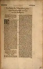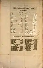 - La Bible nouvellement translatée (trad. Sébastien Castellion), t. 1, Bâle, Jehan Heruage, (lire en ligne), « Regiſtre des liures du vieux teſtament. »