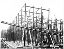 Ce bâtiment est autoporteur : il a été construit autour d’une carcasse métallique, qui va du sous-sol à la toiture. Cette carcasse, qui a été mise en place avant les murs, soutient à la fois les plafonds, les planchers et les rayonnages : cela évite le problème du poids des livres sur les planchers, ce poids étant supporté par la structure elle-même. Ce procédé considéré comme révolutionnaire est néanmoins assez dangereux en cas d’incendie.