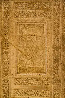 Dessus-de-porte : putti avec les attributs de l'abbé et une ruche.