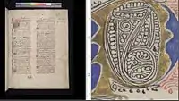 Bibliothèque municipale de Besançon, manuscrit 434, folio 1. Ce manuscrit réalisé à Paris en 1372 à la demande du roi Charles V est d'abord conservé à la "librairie" (bibliothèque) du Louvre. Il entre dans les collections Granvelle puis apparaît dans l'inventaire de 1607 à Besançon[18]. - Ms 45 Recueil des évangiles